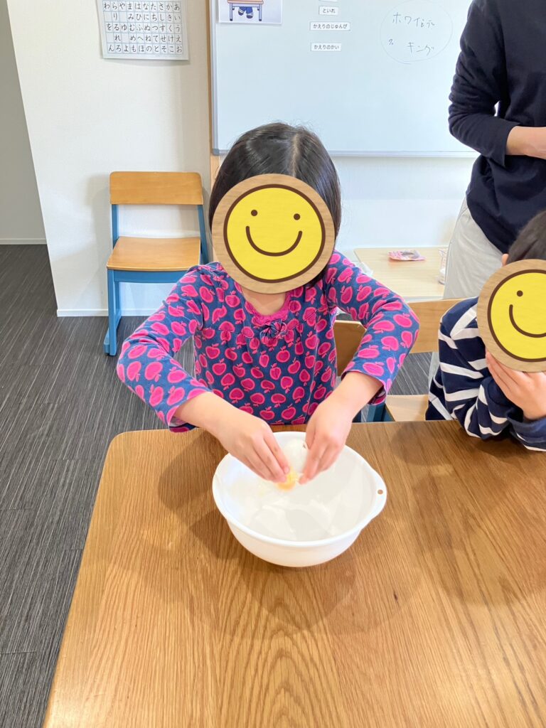 「卵割れるよ!」