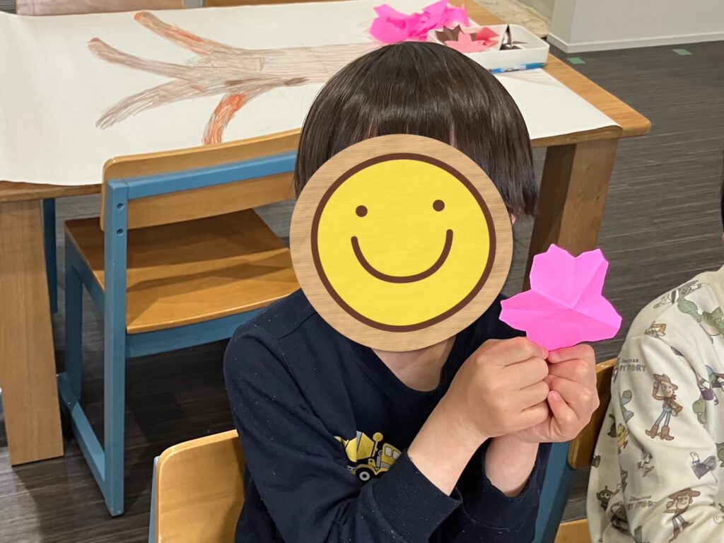 おやつの時間にはみんなで協力して咲かせた満開の桜を見ながらお花見ごっこをしましたよ😍
