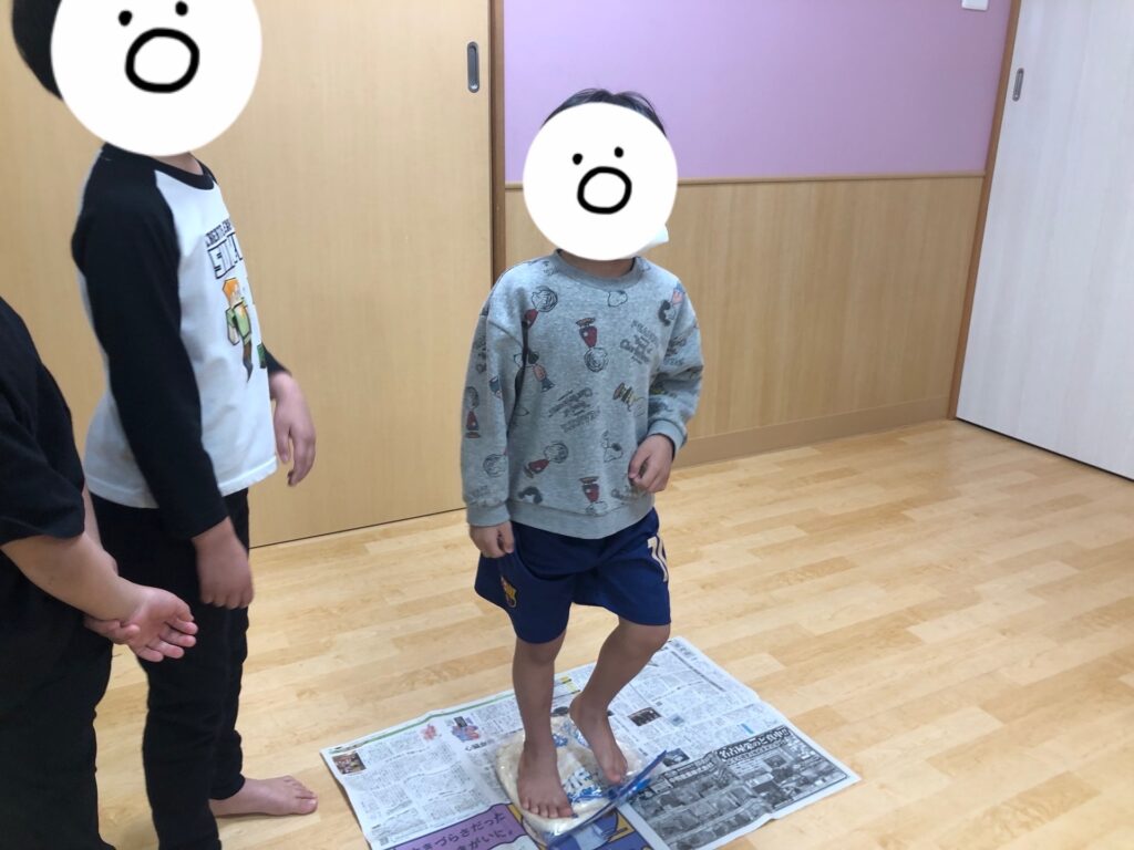 足踏みでこねてコシを出すよ!