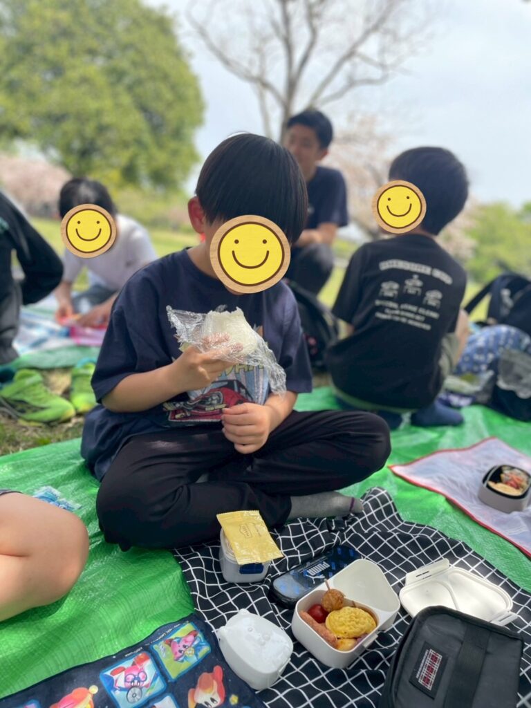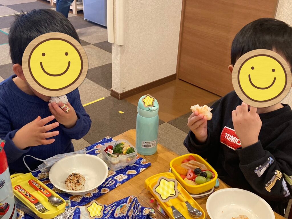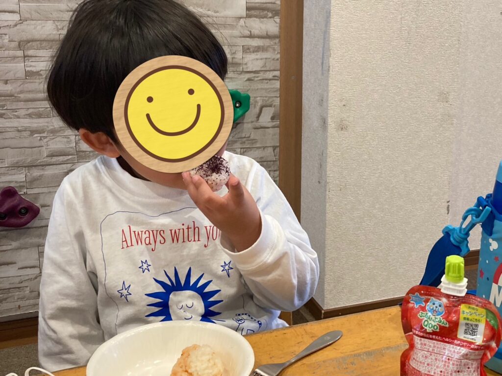 自分で作ったおにぎりは美味しくて、口いっぱいに頬張って食べました😋