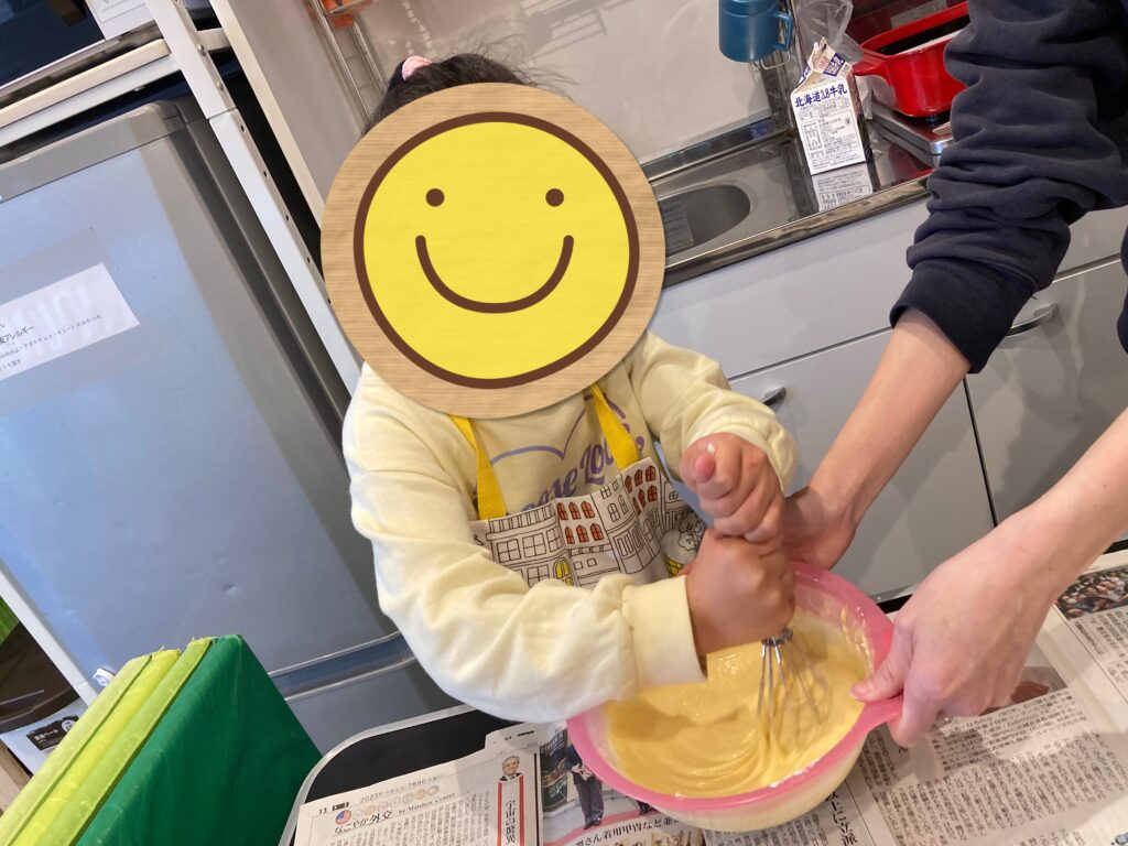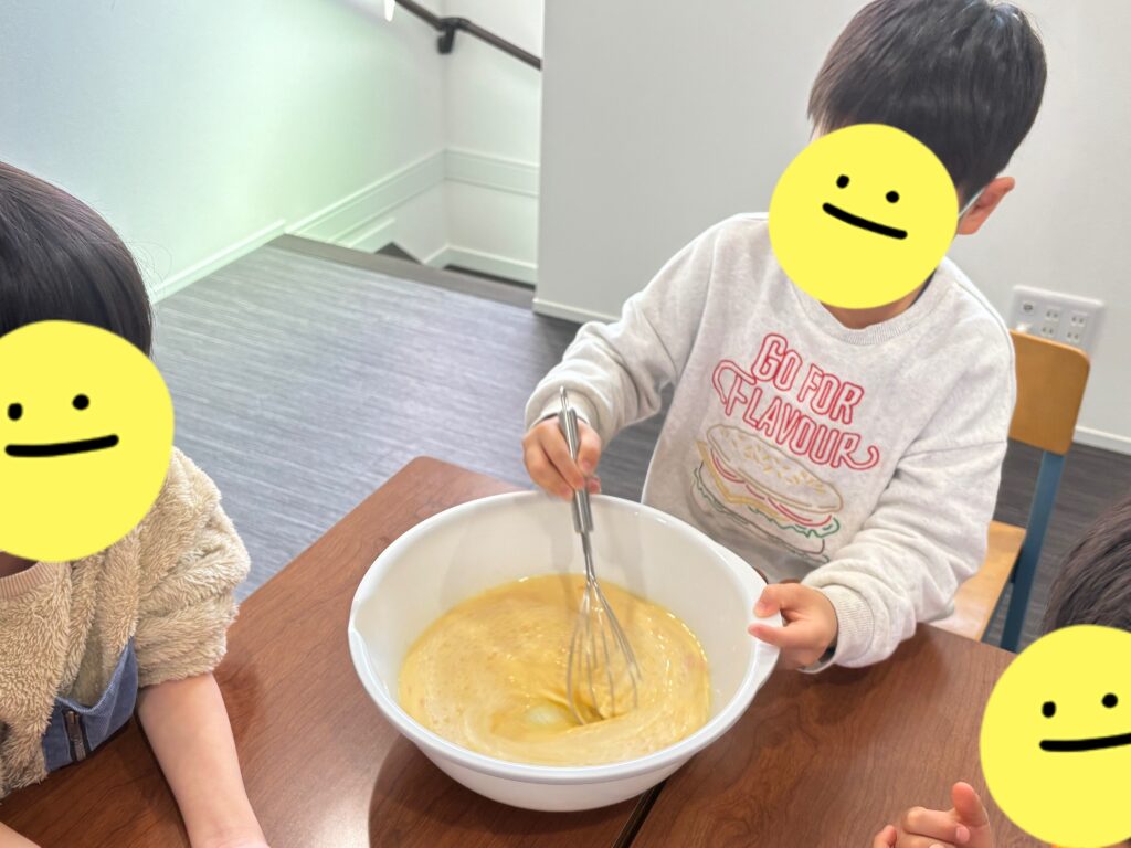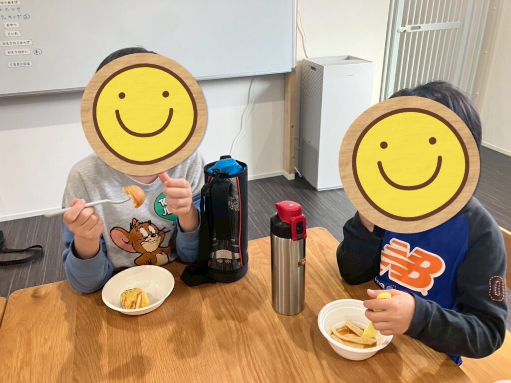 自分たちで作ったうどんと、隣の棟で作ったベビーカステラをおやつに食べました😋