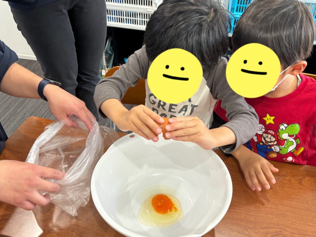 「固まってるよ!」「見て!上手にひっくり返せたよ!」