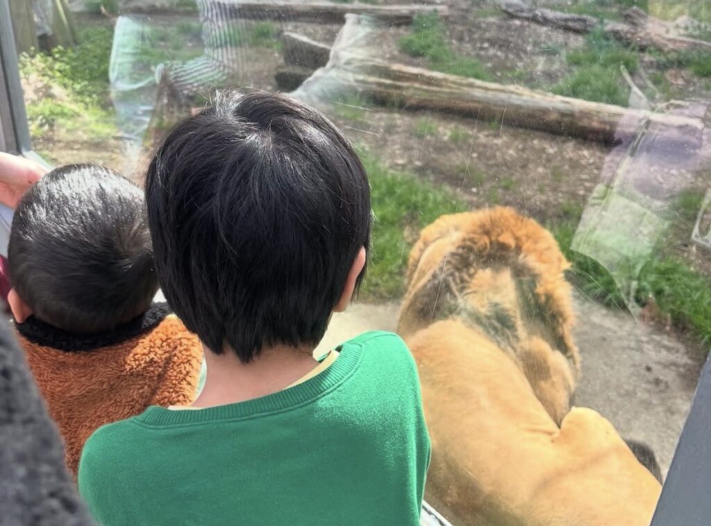 とっても大きなライオン🦁さん発見「ライオンさん、こっち向いて。」