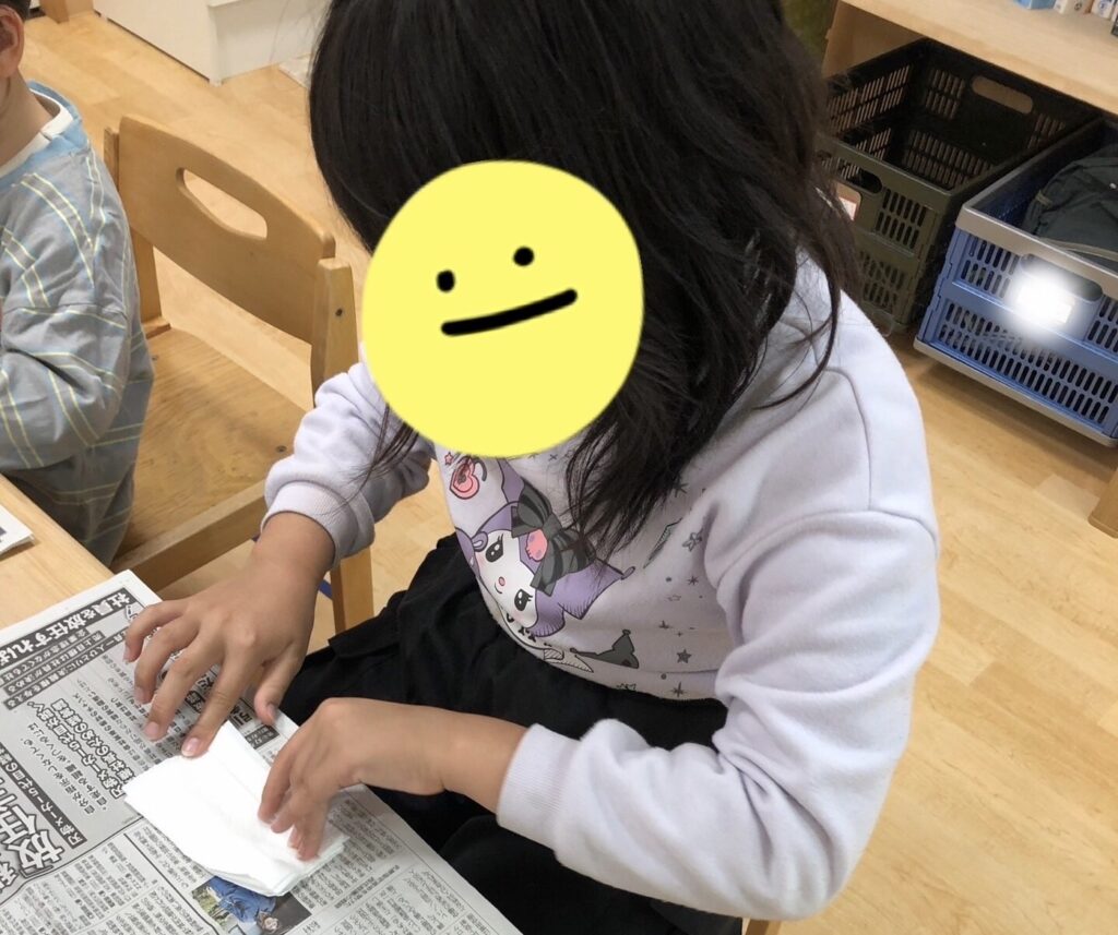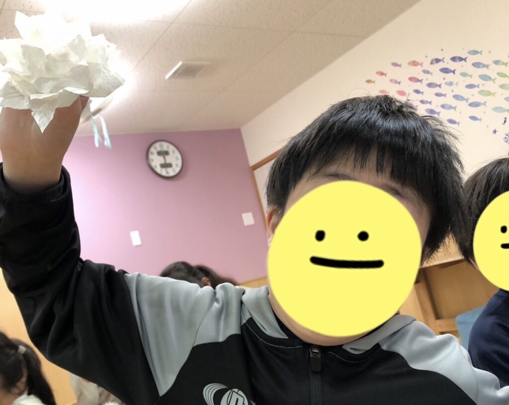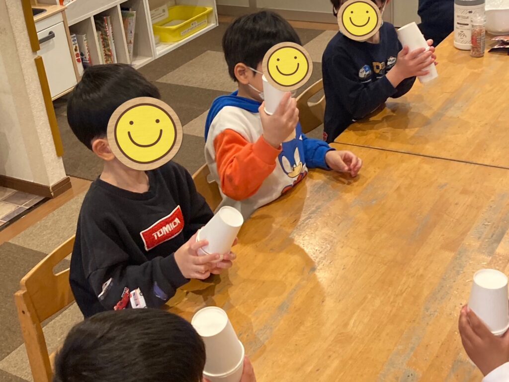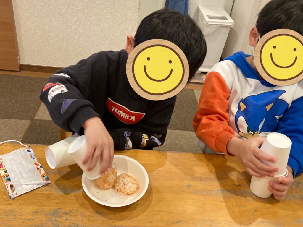 児玉のお友だちは、紙コップを使っておにぎりを作りました🍙