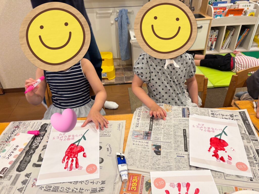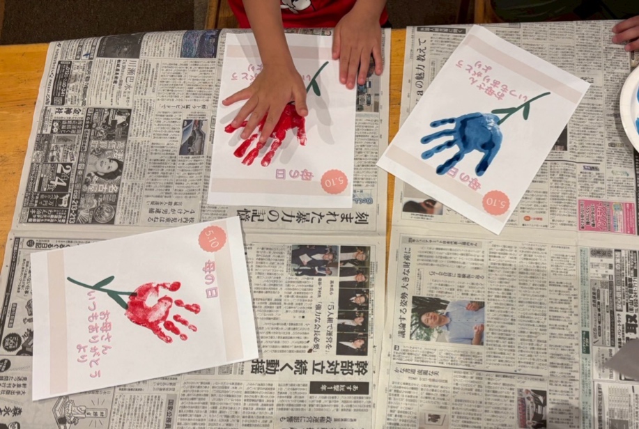 児玉のお友達は「お母さんありがとう」を合言葉に絵の具で手形スタンプカーネーションをつくりました‼️
