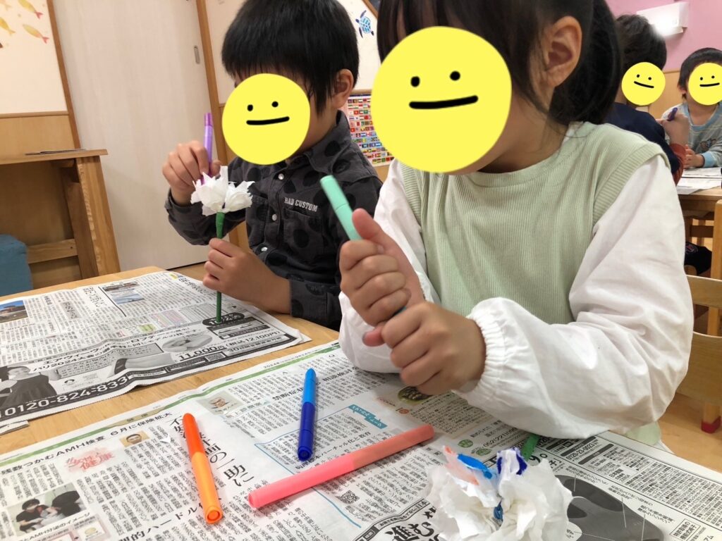 上名古屋では製作『カーネーションづくり』を行いました💐