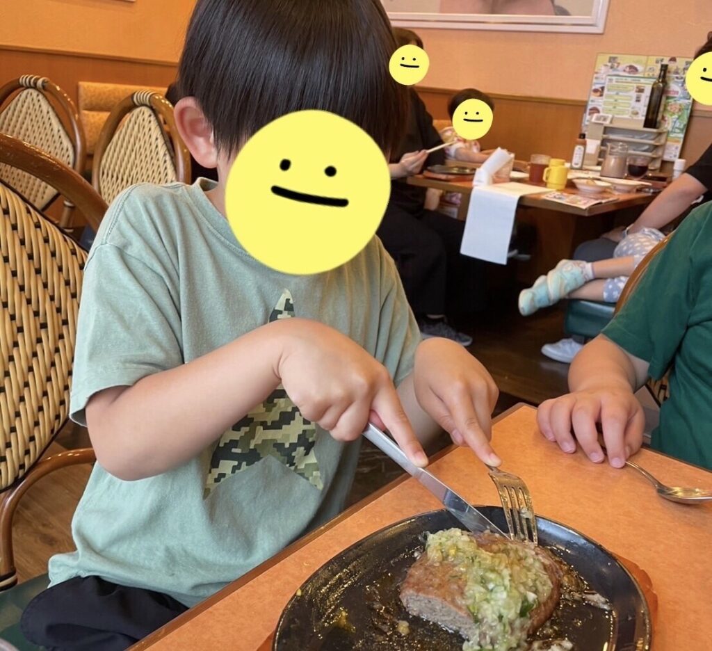 ナイフとフォークも上手に使って実食🎵