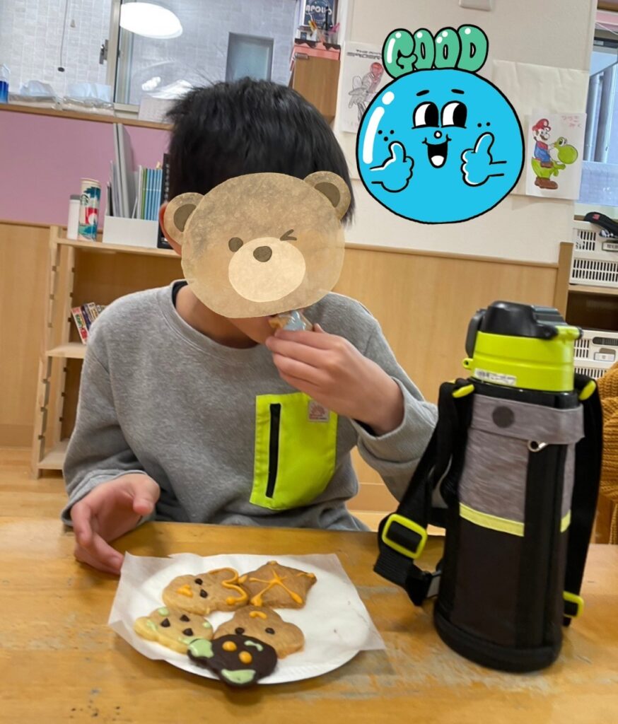 自分たちで作ったクッキーをとても嬉しそうに食べています😋