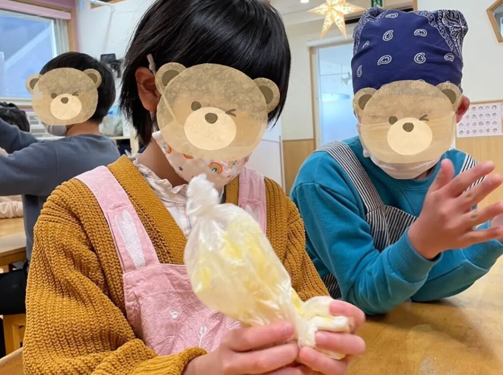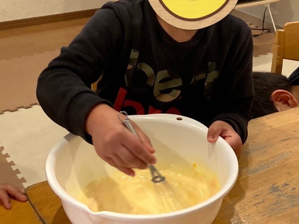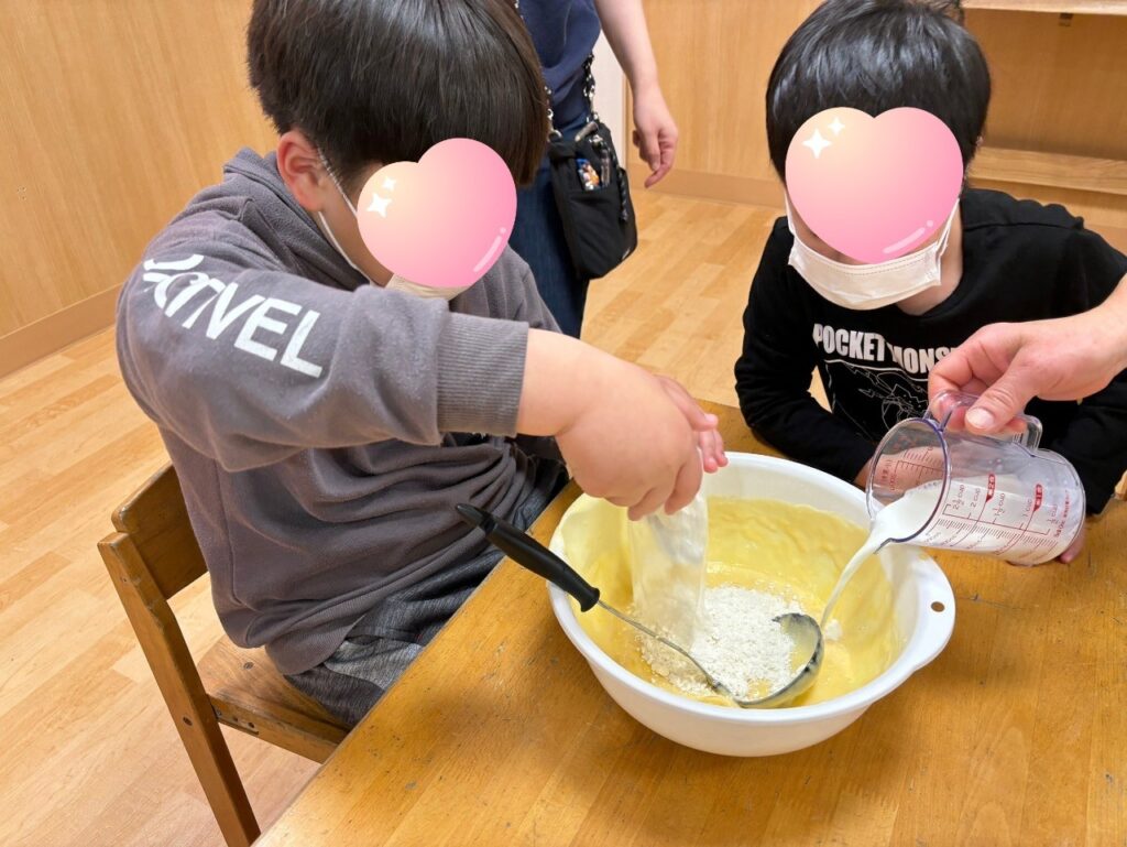 生地作りの工程をみんなで協力して行いましたよ🎵