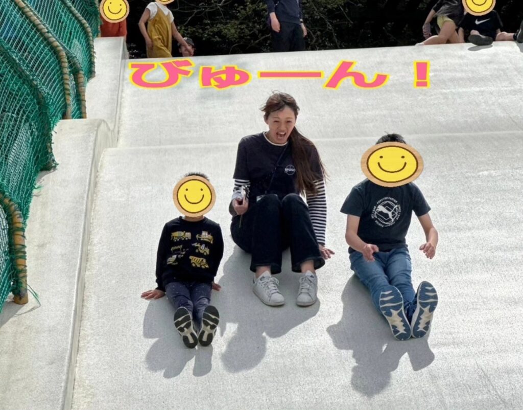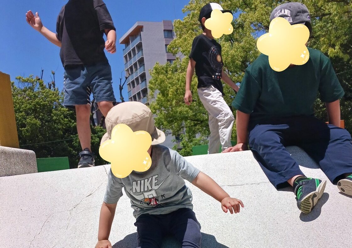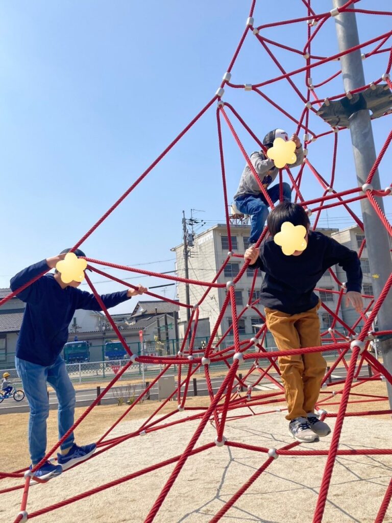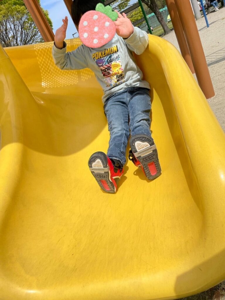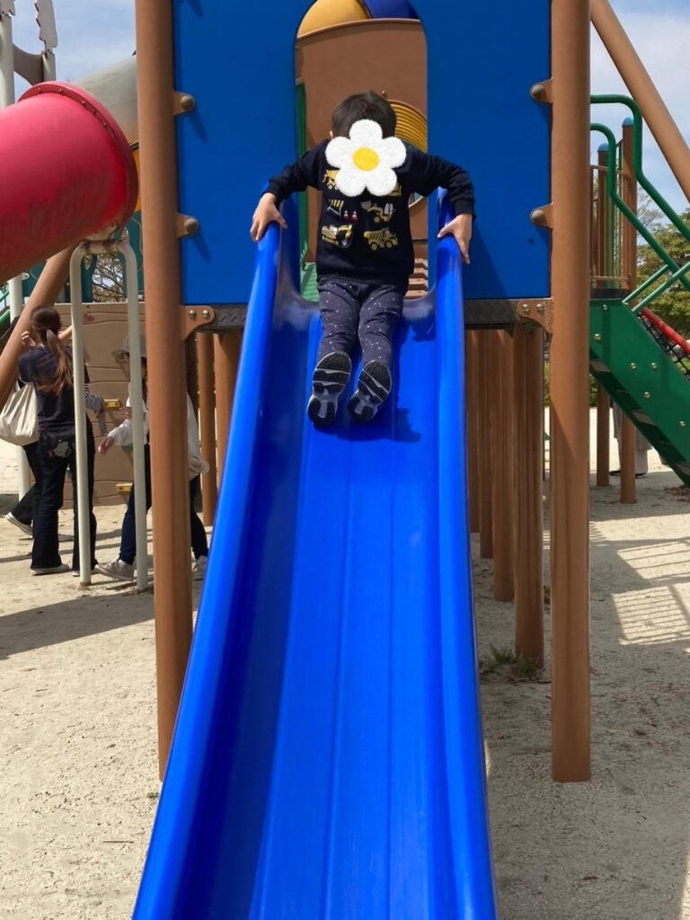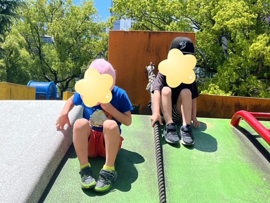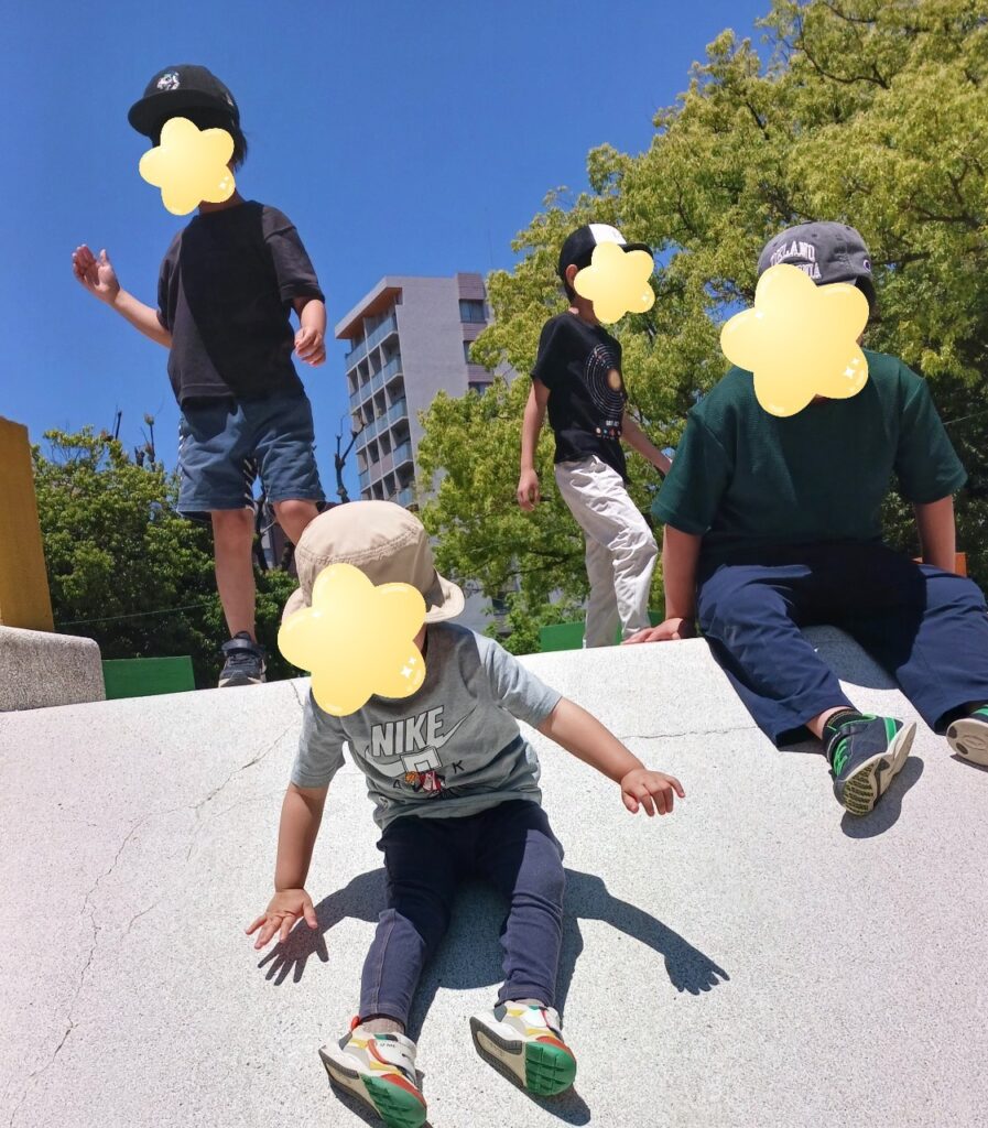 公園に着くと公園の真ん中にあった遊具にみんな一斉に駆け上り滑り台を滑っていました✨