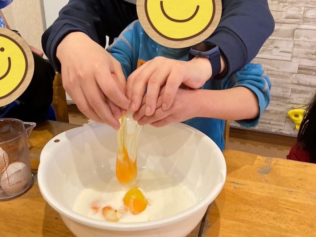次にたまごを割ってボールに入れます🥚