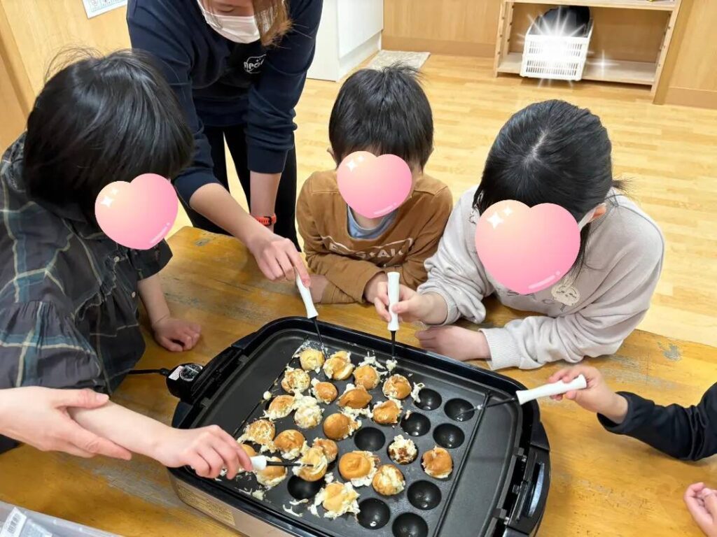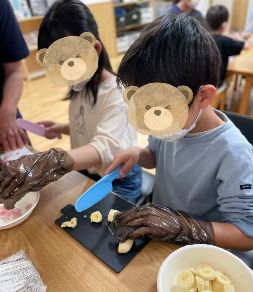 上名古屋のお友達は材料を切ったり、具材を作ったりするところから行います。包丁もとても上手に使えるようになりました😊
