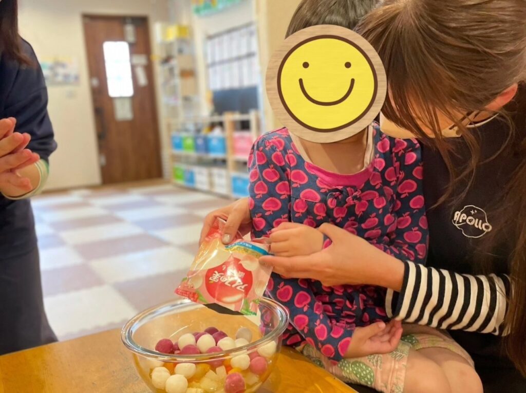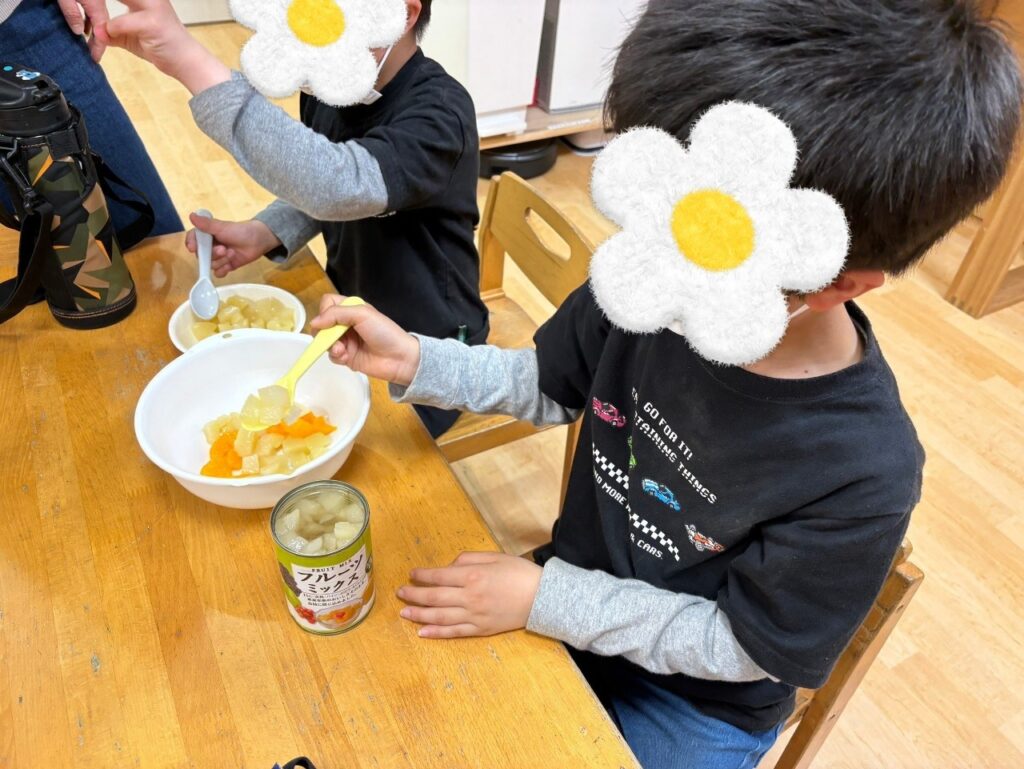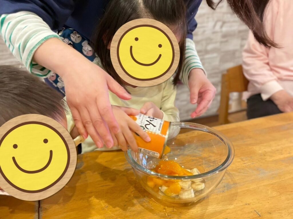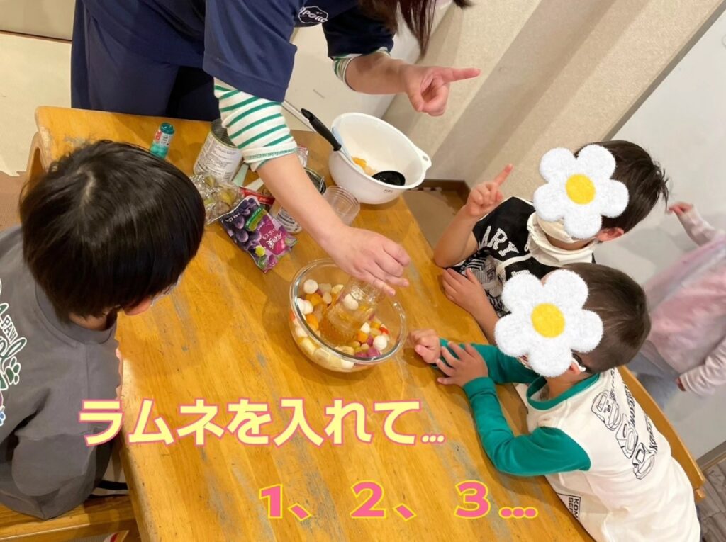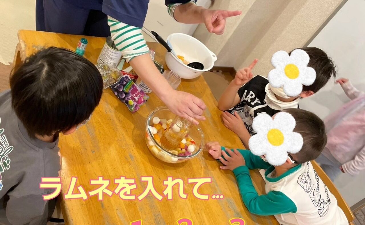 この日はみんなでフルーツポンチ作りのクッキングをしました!
