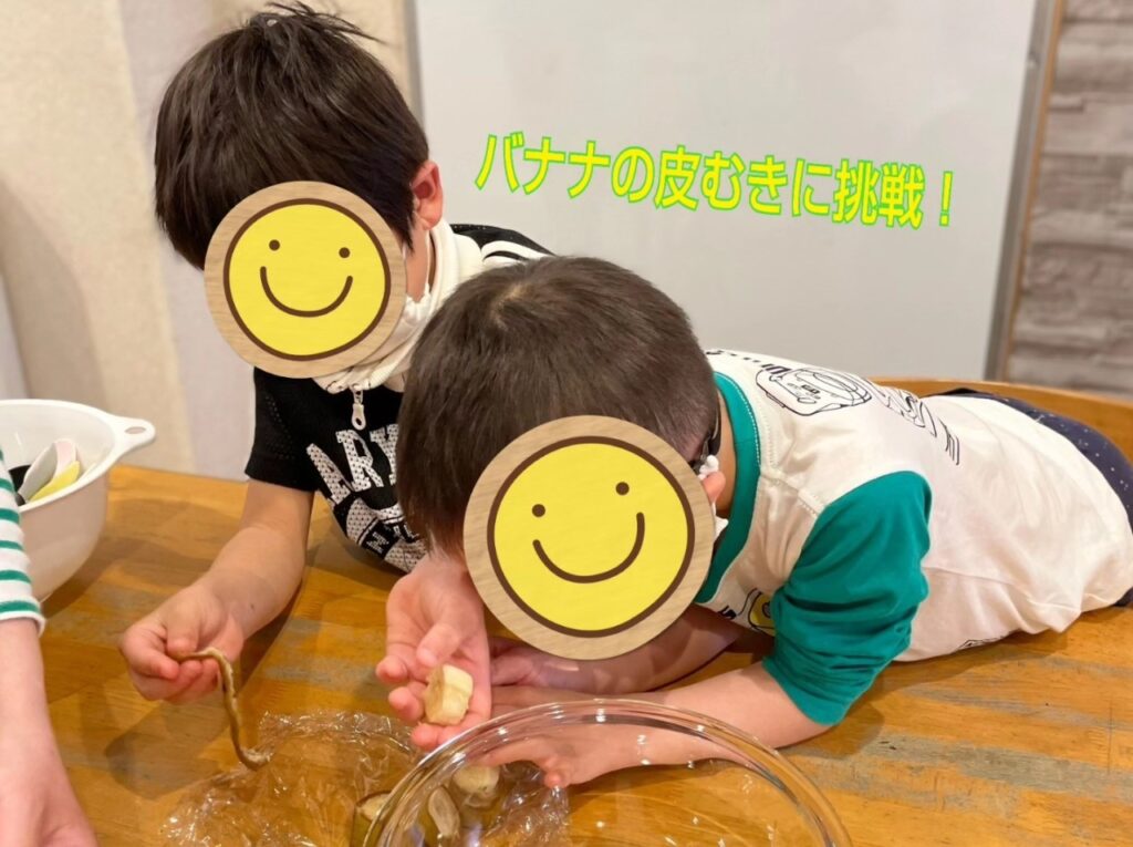 ボーイズチームはバナナの皮むきに挑戦しました🍌
