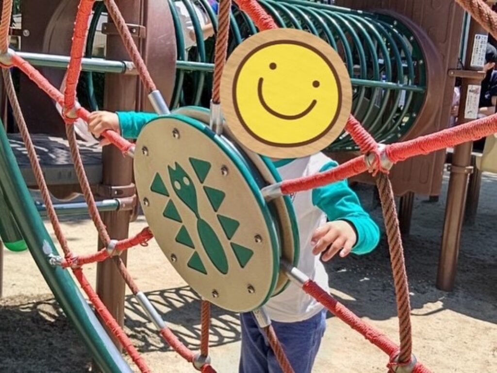 クモの巣のような遊具にのぼり、チラっと覗いて笑顔を見せてくれましたよ💕