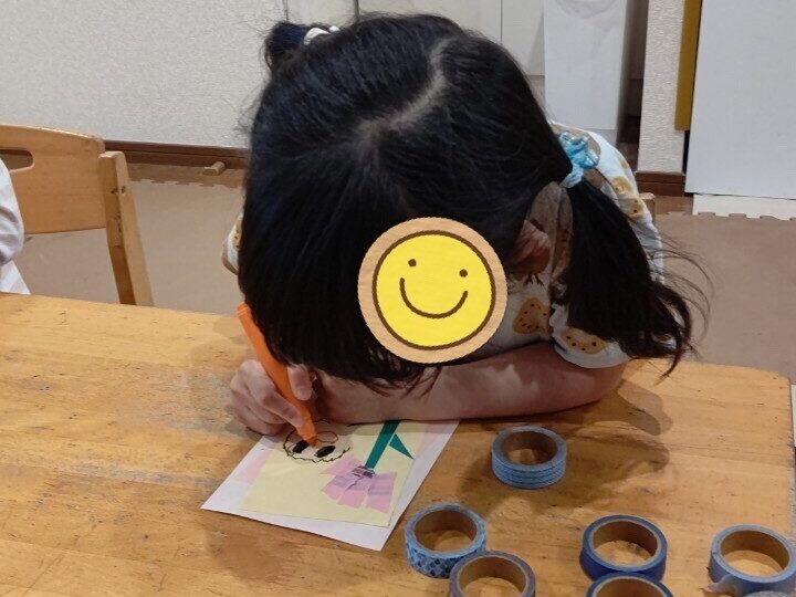 大好きなお母さんのお顔を描くのも真剣です✨